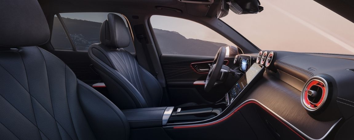 Inside, the GLC 350e surrounds occupants with ARTICO upholstery, 64-colour ambient lighting, heated seats, dual-zone THERMATIC climate control, and power-folding rear seats. Optional features include Nappa leather, panoramic sunroof, and enhanced ambient lighting, creating a personalized cabin experience. There’s also plenty of versatile cargo space, perfect for groceries, weekend gear, or luggage for longer trips, making it a practical SUV for everyday life.